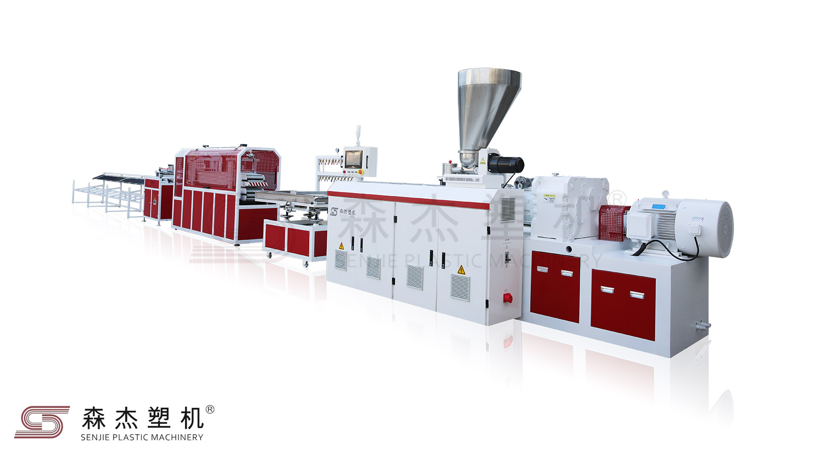 KB系列激光跟蹤無縫扣板技術為森杰研發(fā),該PVC扣板生產線主要用于生產天花板,集成吊頂,箱包板,外墻掛板,扣板角線等。該設備由雙螺桿擠出機,真空定型臺,牽引機,全自動切割機,翻料架構成,獨有的高科技激光跟蹤器,不僅確保無縫扣板高產量、高質量擠出,同時也大大降低了生產成本,得到廣大客戶的一致好評。